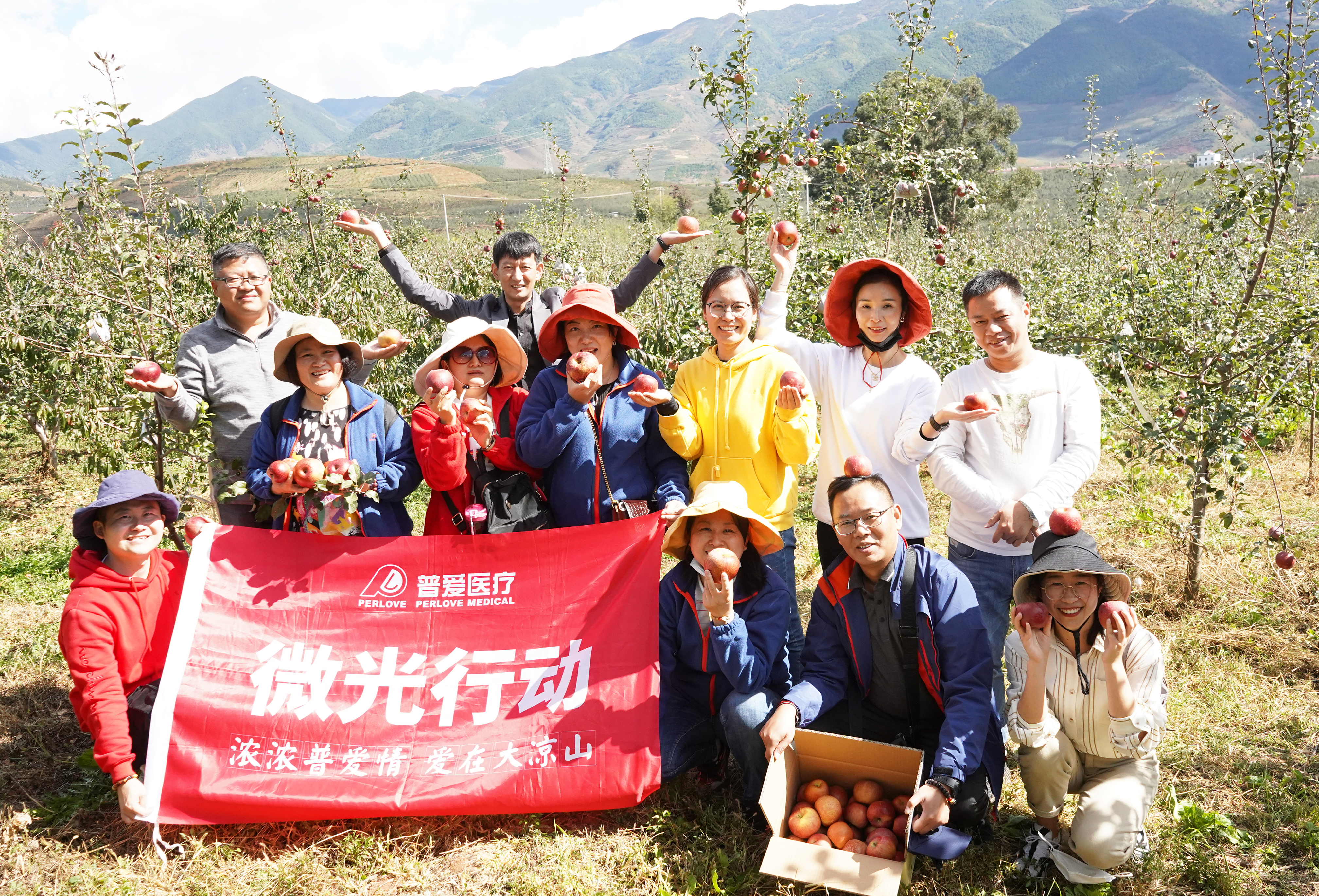 十月,正值鹽源蘋果收獲的季節(jié),為了幫果農(nóng)打開銷路,安心過冬,同時把新鮮采摘的鹽源蘋果回饋給普愛醫(yī)療的員工和會員俱樂部的會員們,公益團(tuán)隊親自來到果園,幫助果農(nóng)采摘蘋果。