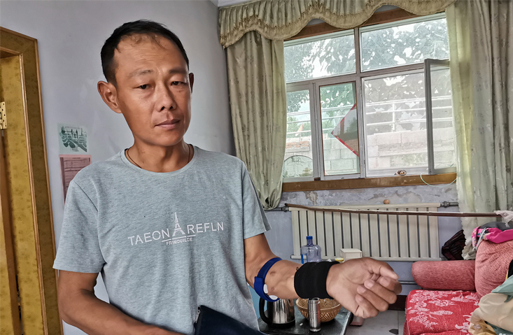 42歲的毛偉強,是山東省萊州市祚村鎮(zhèn)·大臺頭村的一個果農(nóng),家里只有三口人。他是一個嚴(yán)重的尿毒癥患者,曾下過兩次病危通知,目前一個星期要去醫(yī)院透析3次,妻子的精神時而清醒時而糊涂,家里的重?fù)?dān)都壓在他一個病人身上。更令他心痛的是他心愛的女兒,也是一個尿毒癥患者,今年才只有15歲,正在上初三,學(xué)習(xí)成績特別優(yōu)秀。他的母親也因尿毒癥剛?cè)ナ啦痪?,本該陽光幸福的家庭,卻被命運捉弄著。他透析的膀臂,常年纏著繃帶,沒有辦法,他必須帶著傷口去干活,去掙錢,為他的家人撐起一片天。